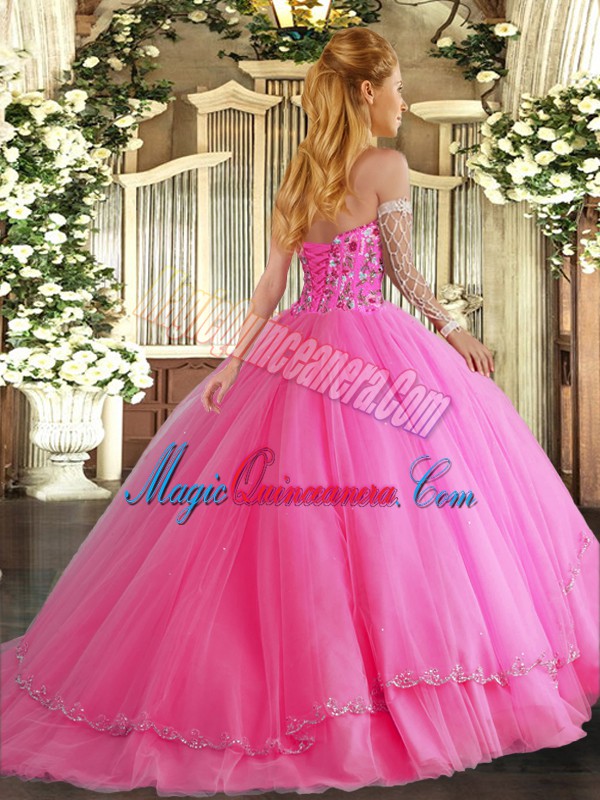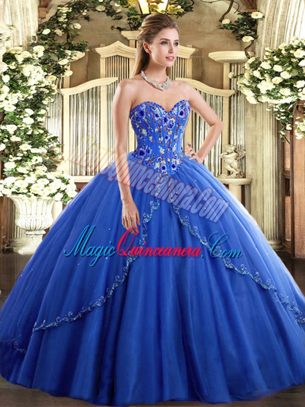 Top Selling Blue Sleeveless Tulle Brush Train Lace Up Quinceanera Dress for Military Ball and Sweet 16 and Quinceanera