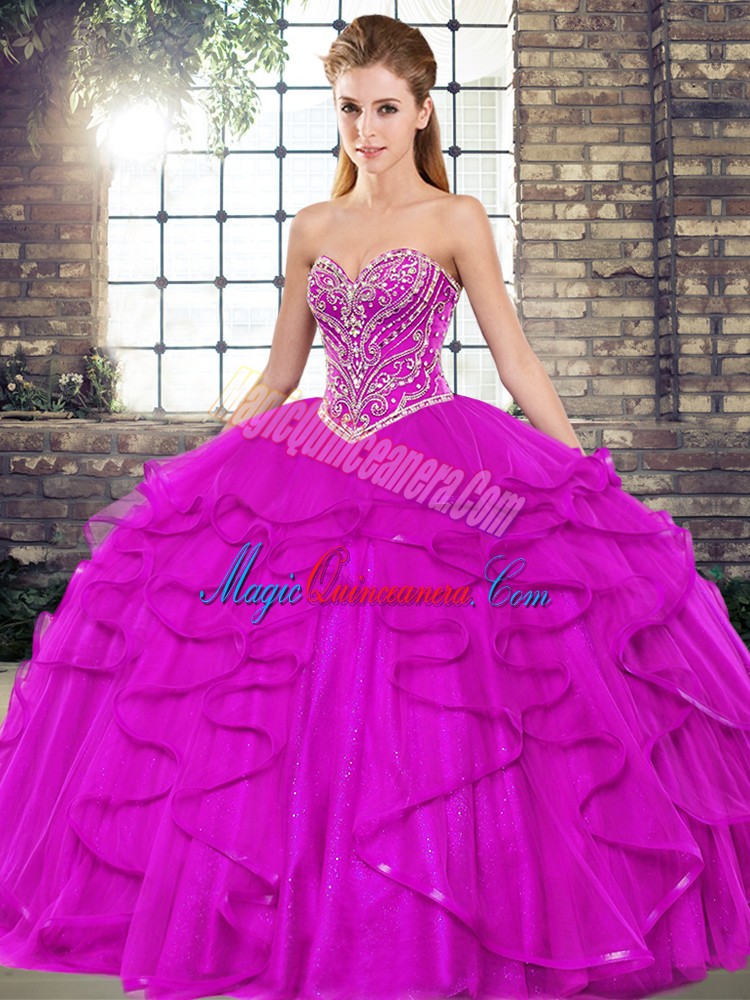 Top Selling Fuchsia Quinceanera Dress Military Ball and Sweet 16 and Quinceanera with Beading and Ruffles Sweetheart Sleeveless Lace Up