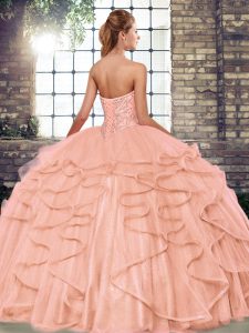 Modern Floor Length Baby Pink Sweet 16 Dresses Organza Sleeveless Beading and Ruffles