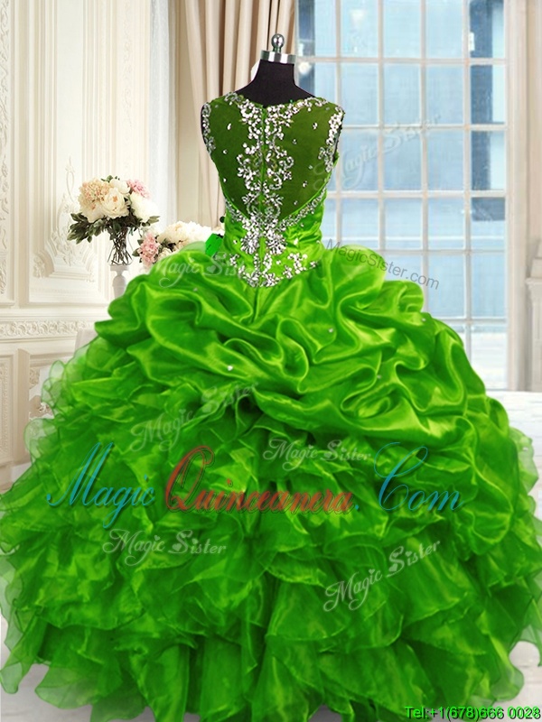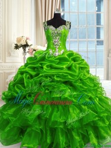 Top Selling Green Lace Up 15th Birthday Dress Beading and Ruffles and Pick Ups Sleeveless Floor Length