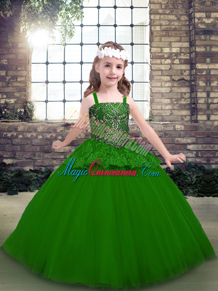 Top Selling Green Sleeveless Beading Floor Length Child Pageant Dress
