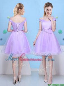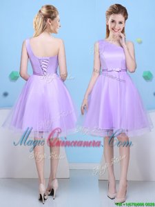 , Top Selling Lavender Scoop Lace Up Bowknot Damas Dress Sleeveless