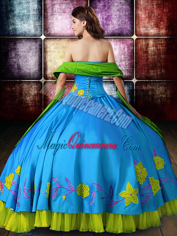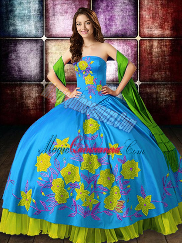 Top Selling Multi-color Lace Up Quinceanera Dresses Embroidery Sleeveless Floor Length