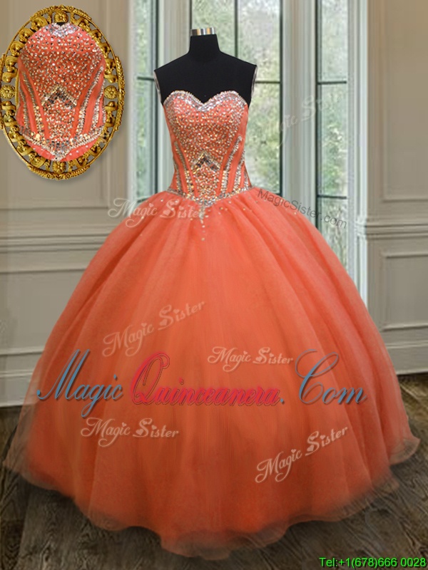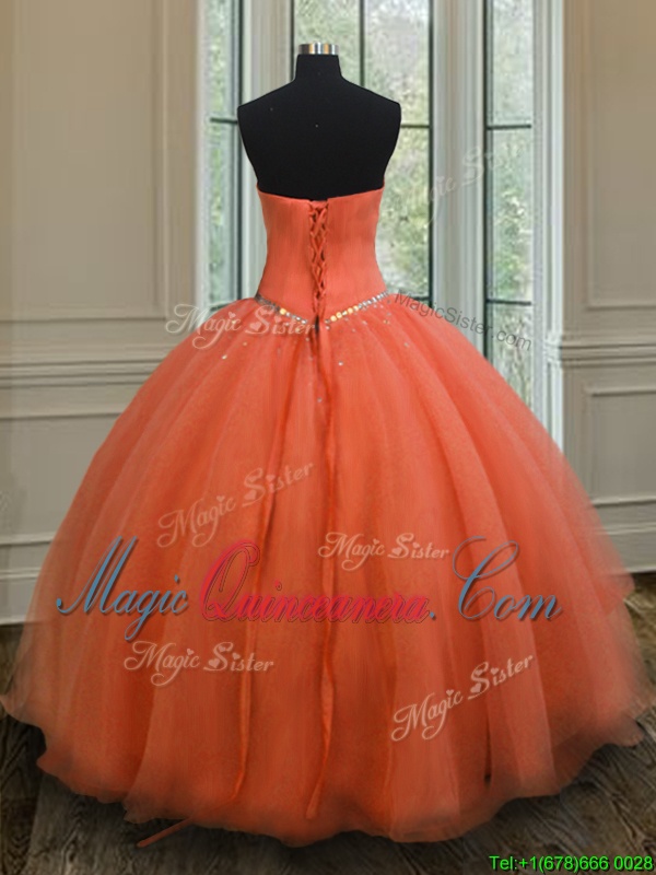 Top Selling Orange Red Lace Up Quinceanera Dresses Sequins Sleeveless Floor Length