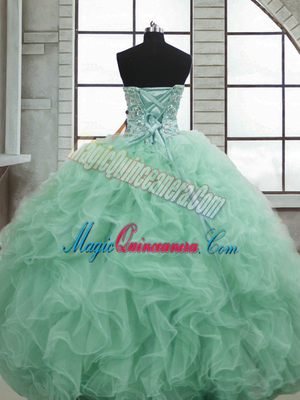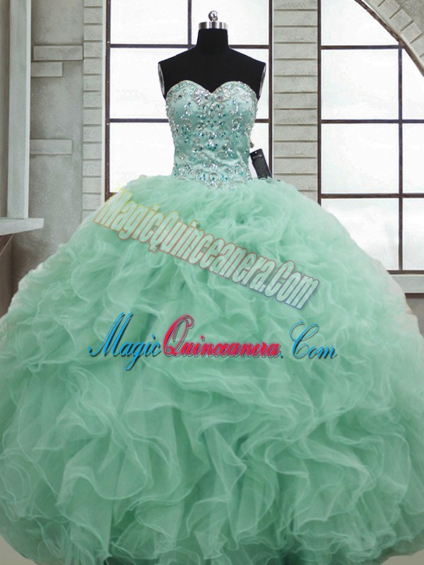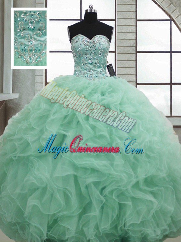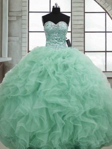 Top Selling Organza Sweetheart Sleeveless Lace Up Beading and Ruffles Quinceanera Gowns in Apple Green