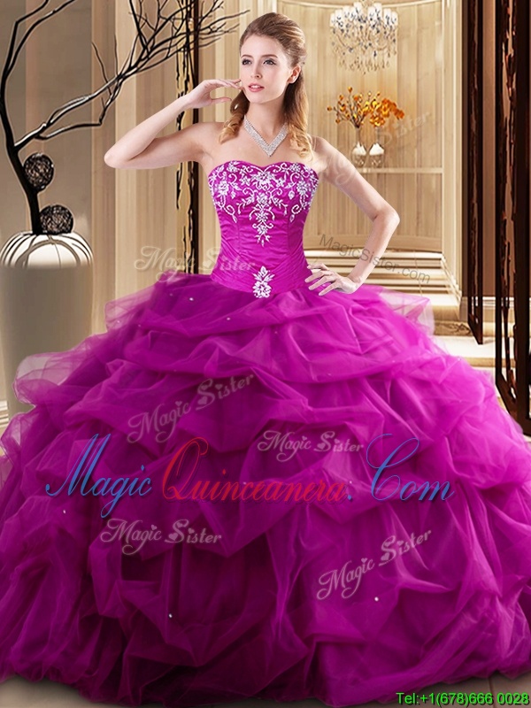 , Top Selling Sleeveless Embroidery and Pick Ups Lace Up Quince Ball Gowns