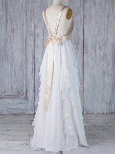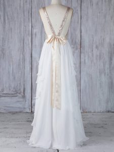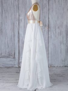 Top Selling White Backless Quinceanera Dama Dress Ruffles and Sequins Sleeveless Floor Length