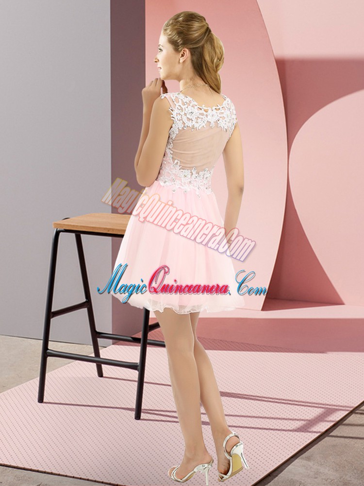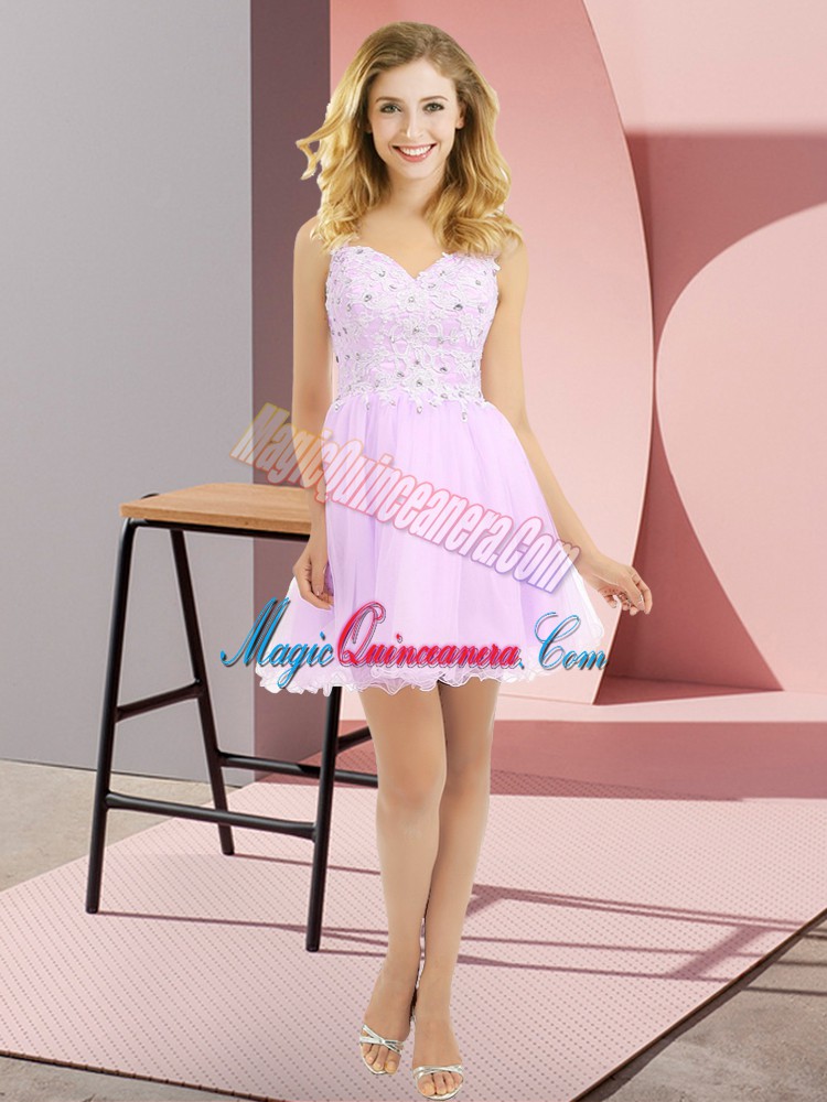 Traditional Lilac Empire Tulle V-neck Sleeveless Beading and Lace Mini Length Side Zipper Court Dresses for Sweet 16