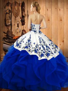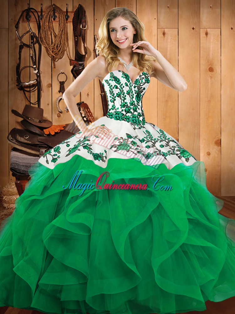 Traditional Turquoise Sweetheart Neckline Embroidery and Ruffles 15th Birthday Dress Sleeveless Lace Up