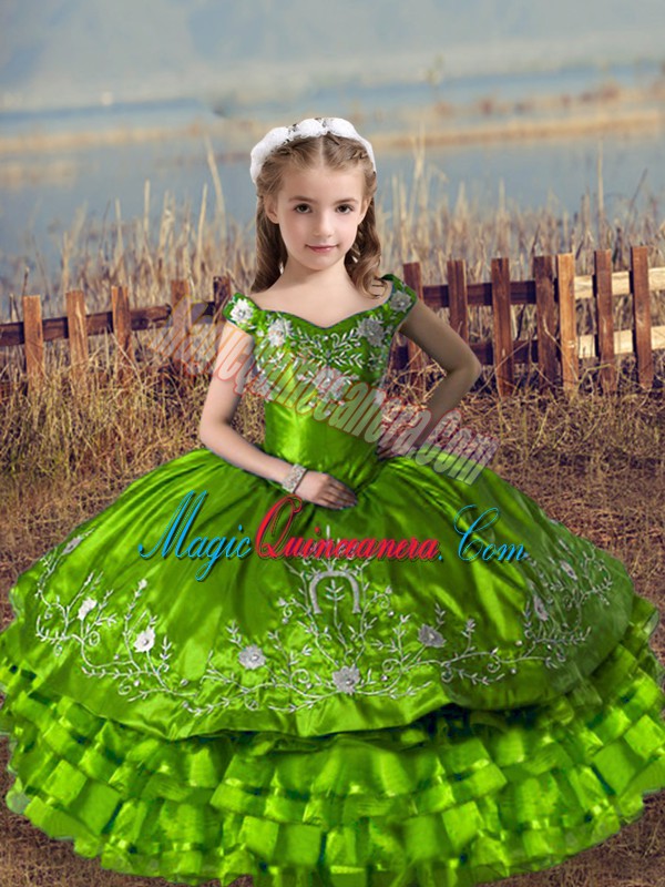 Trendy Ball Gowns Little Girls Pageant Dress Off The Shoulder Satin and Organza Sleeveless Floor Length Lace Up
