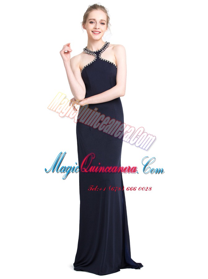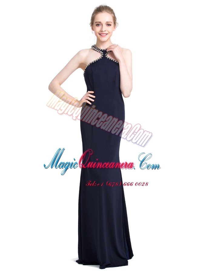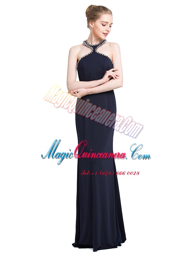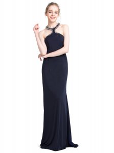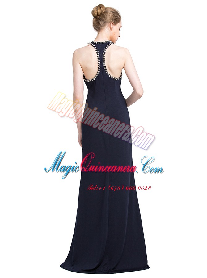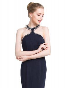 Trendy Black Chiffon Zipper High-neck Sleeveless Floor Length Beading