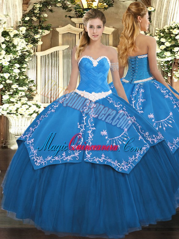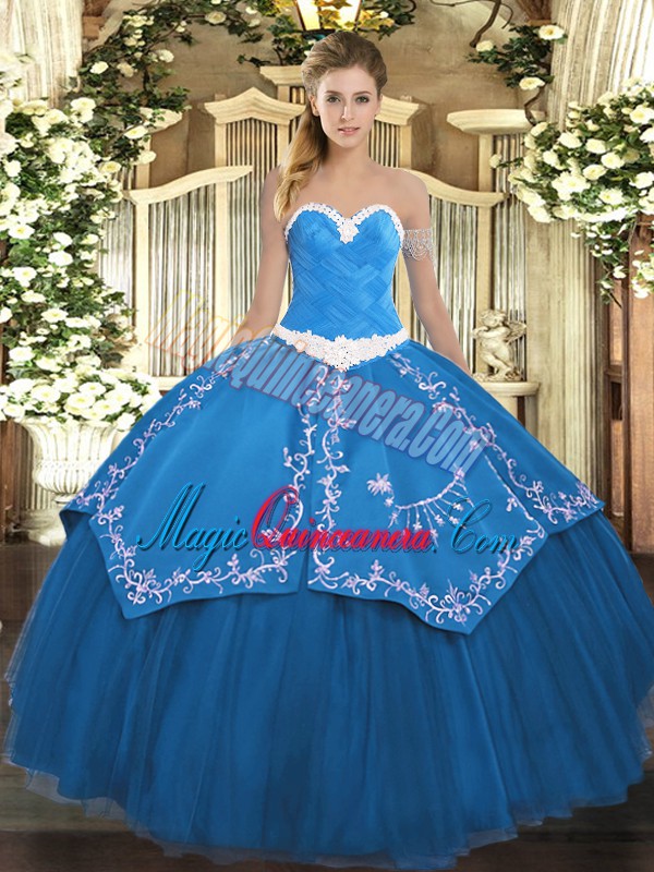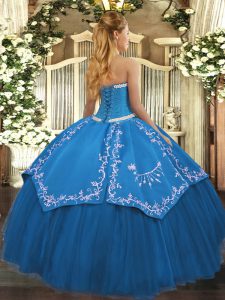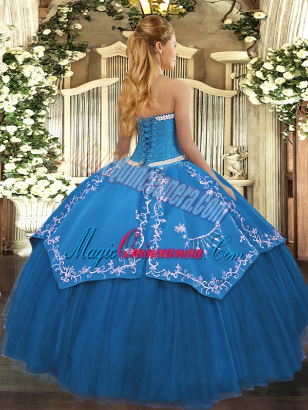 Trendy Floor Length Ball Gowns Sleeveless Blue Quinceanera Dresses Lace Up