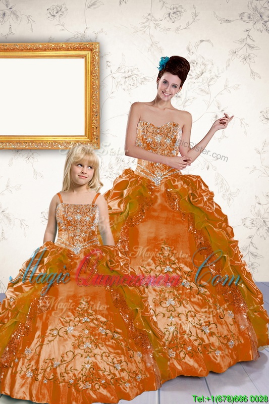 Trendy Floor Length Orange Quinceanera Gowns Taffeta Sleeveless Beading and Embroidery and Pick Ups