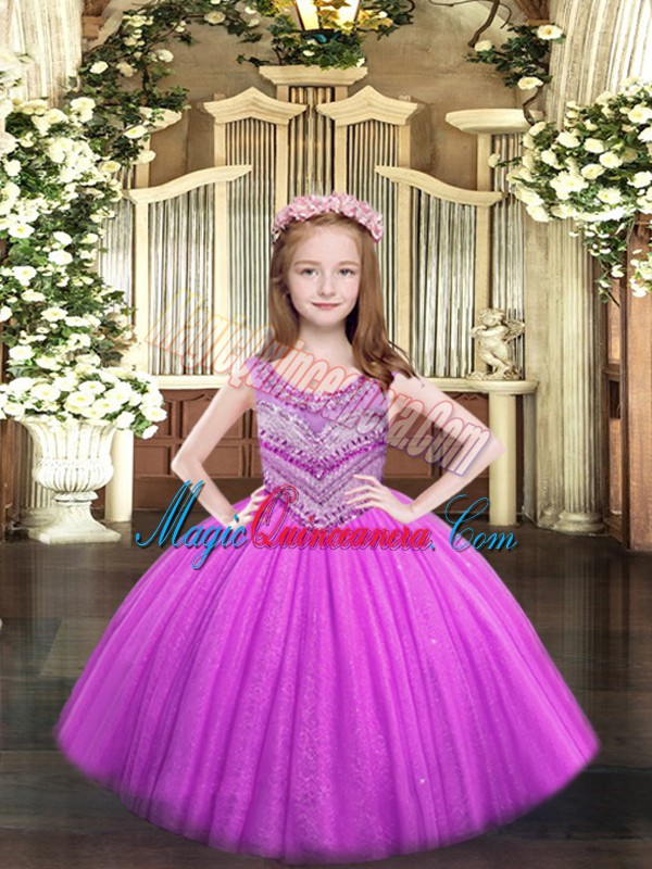 Trendy Lilac Lace Up Scoop Beading Pageant Dress for Teens Tulle Sleeveless