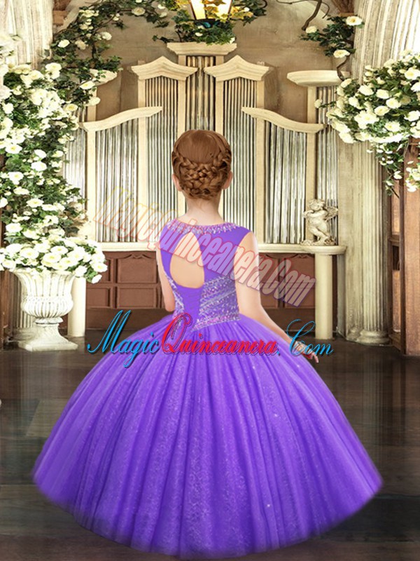 , Trendy Lilac Lace Up Scoop Beading Pageant Dress for Teens Tulle Sleeveless