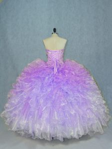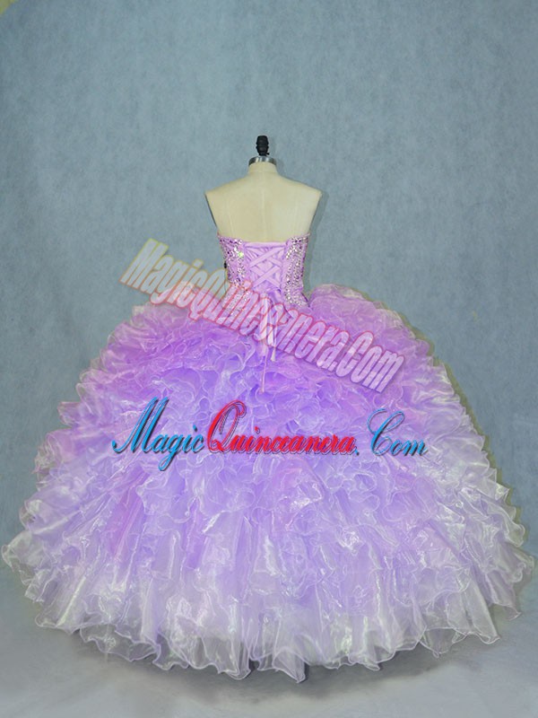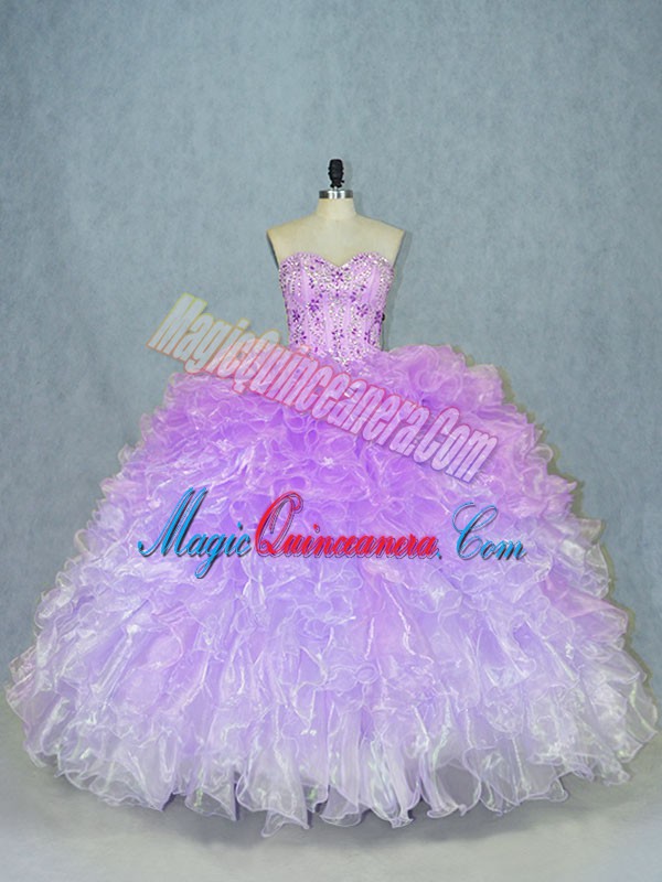 Trendy Multi-color Organza Lace Up Sweetheart Sleeveless Floor Length Sweet 16 Dress Beading and Ruffles
