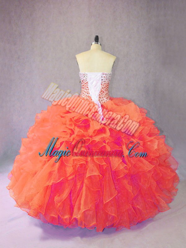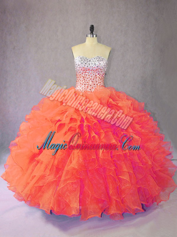 Trendy Organza Sleeveless Floor Length Sweet 16 Quinceanera Dress and Beading and Ruffles