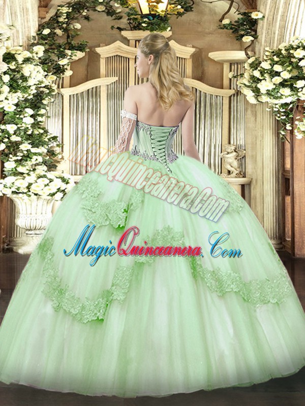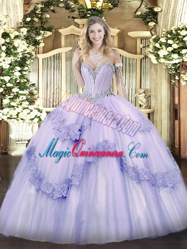 Trendy Sleeveless Beading and Appliques Lace Up 15 Quinceanera Dress