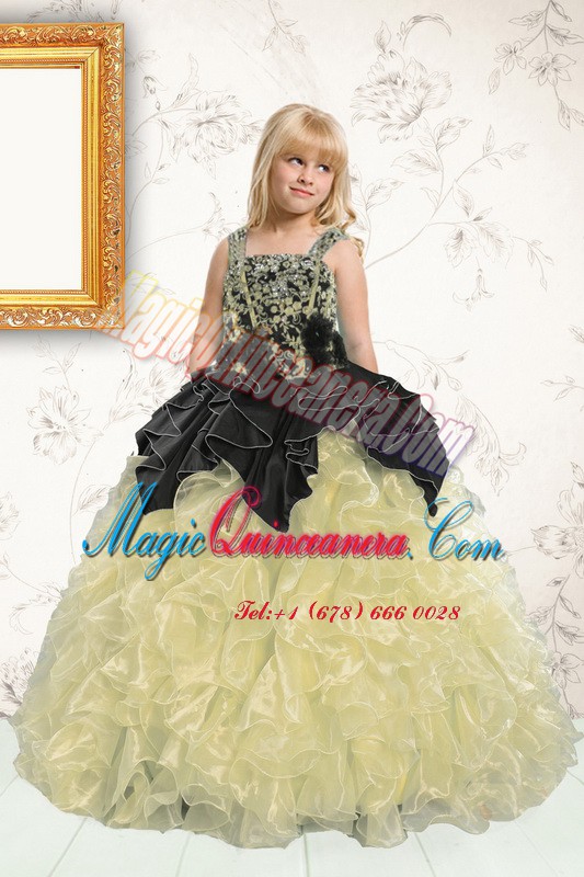 Trendy Straps Sleeveless Evening Gowns Floor Length Beading and Pick Ups Champagne Organza
