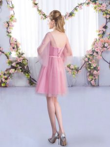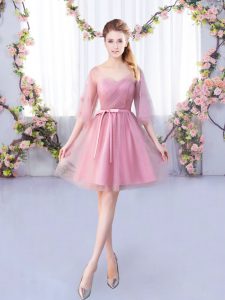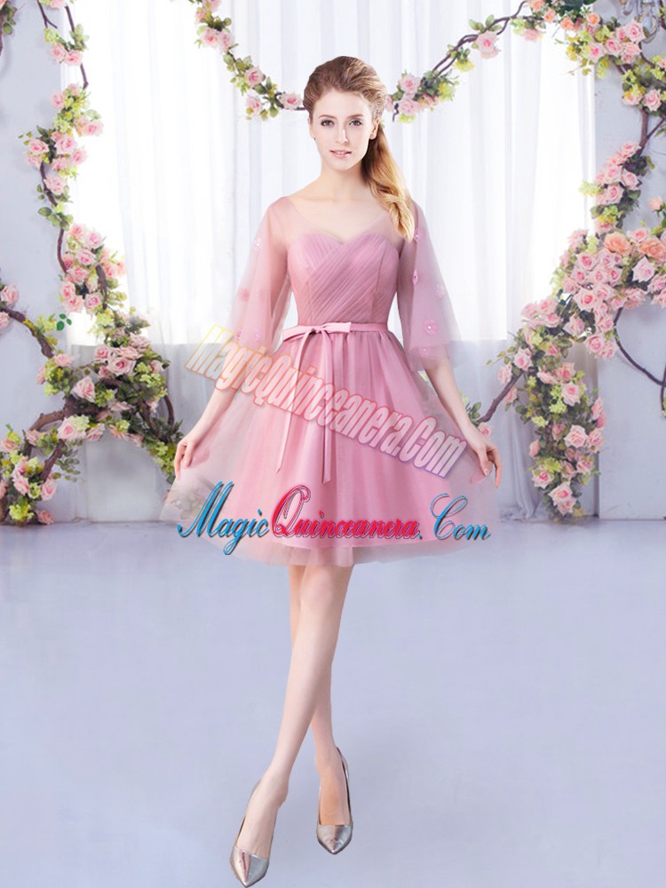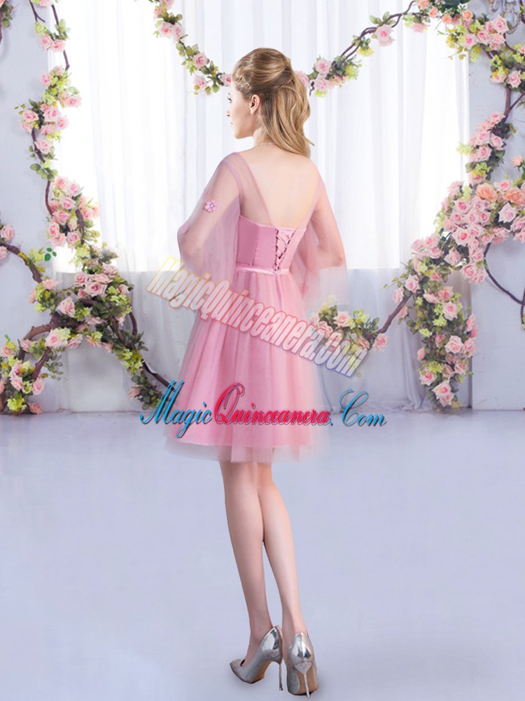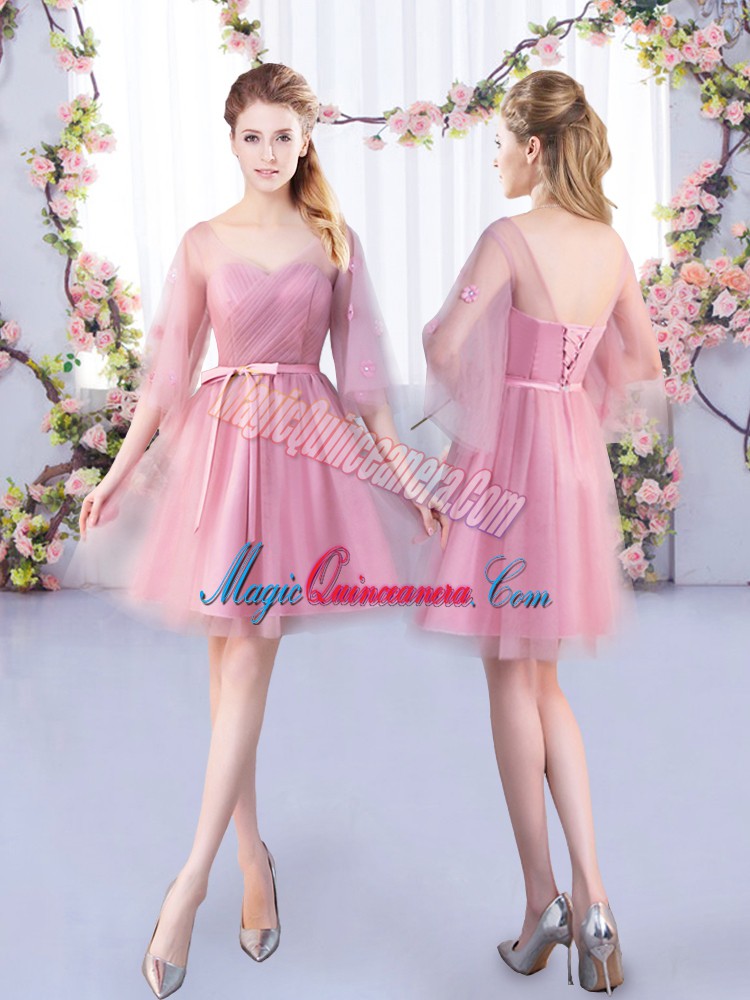 Trendy V-neck Half Sleeves Tulle Quinceanera Court Dresses Appliques and Belt Lace Up