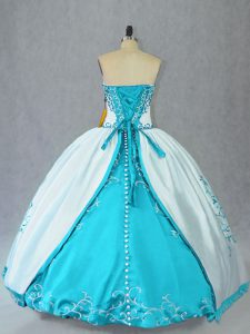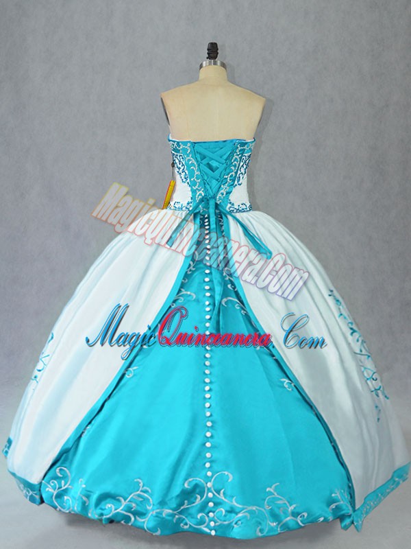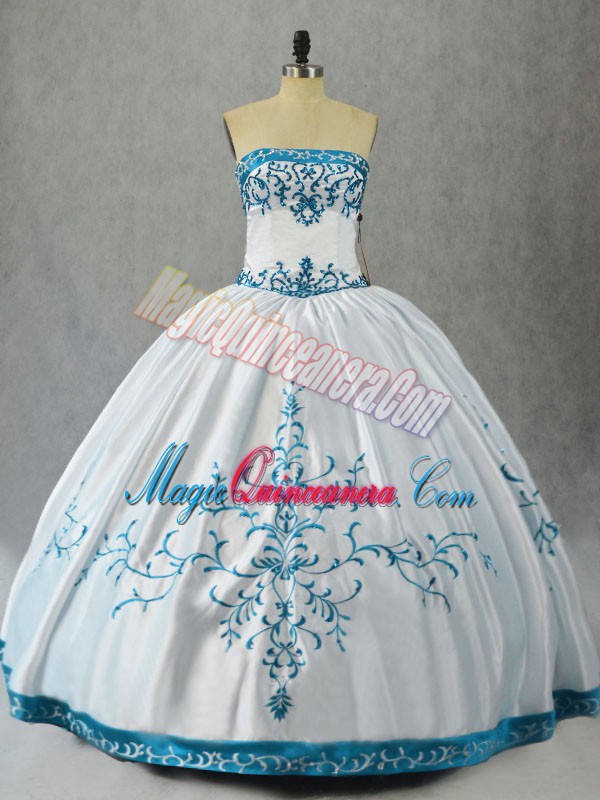Trendy White Strapless Neckline Embroidery 15 Quinceanera Dress Sleeveless Lace Up