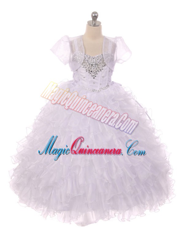 Trendy White Straps Lace Up Beading and Ruffles High School Pageant Dress Sleeveless