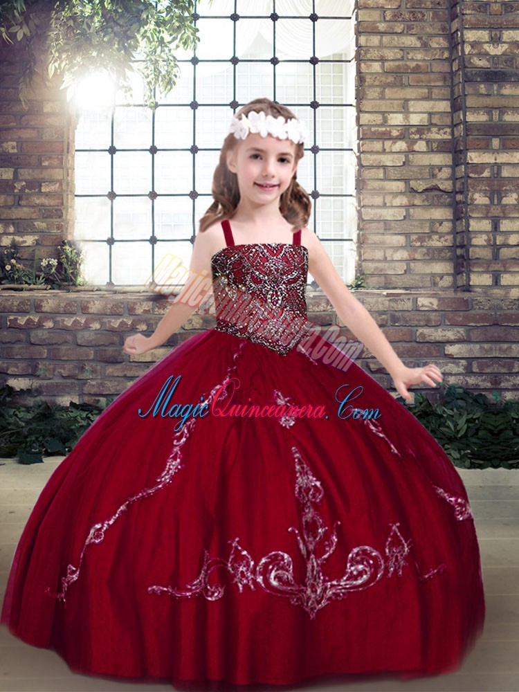 Trendy Wine Red Straps Lace Up Beading Little Girl Pageant Gowns Sleeveless