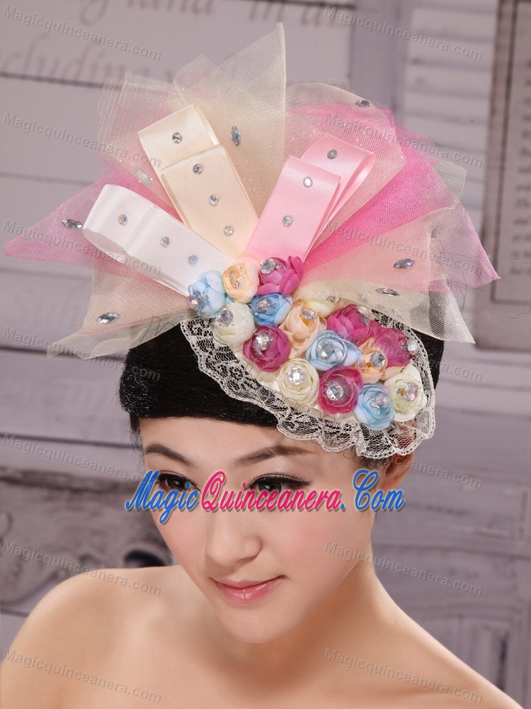 Tulle and Bud Silk Headdress Flower With Beading For Bride New Arrival