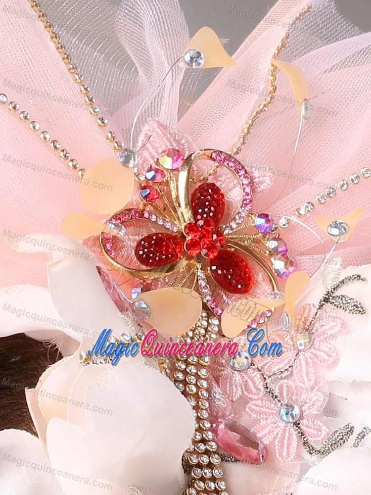 Tulle and Organza Beaded and Flowers Decorate Baby Pink Headpices