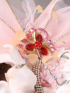 , Tulle and Organza Beaded and Flowers Decorate Baby Pink Headpices