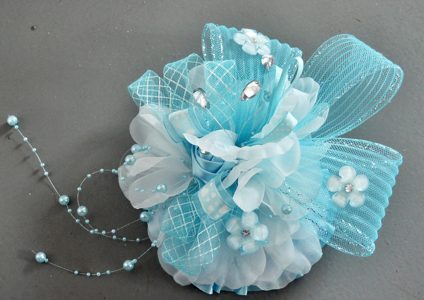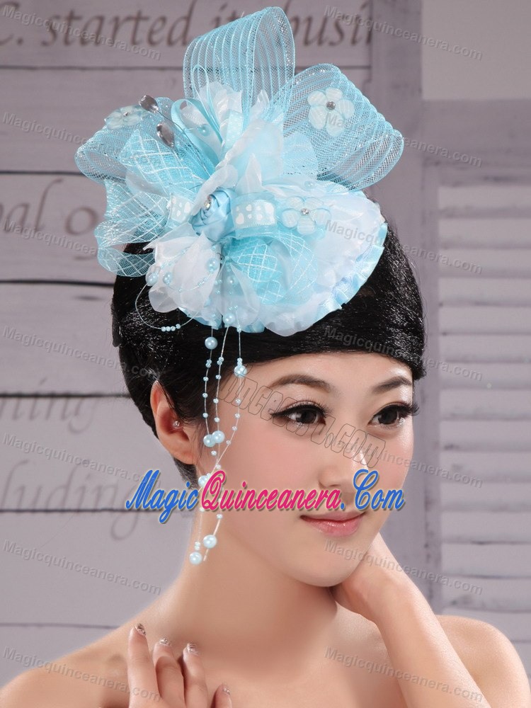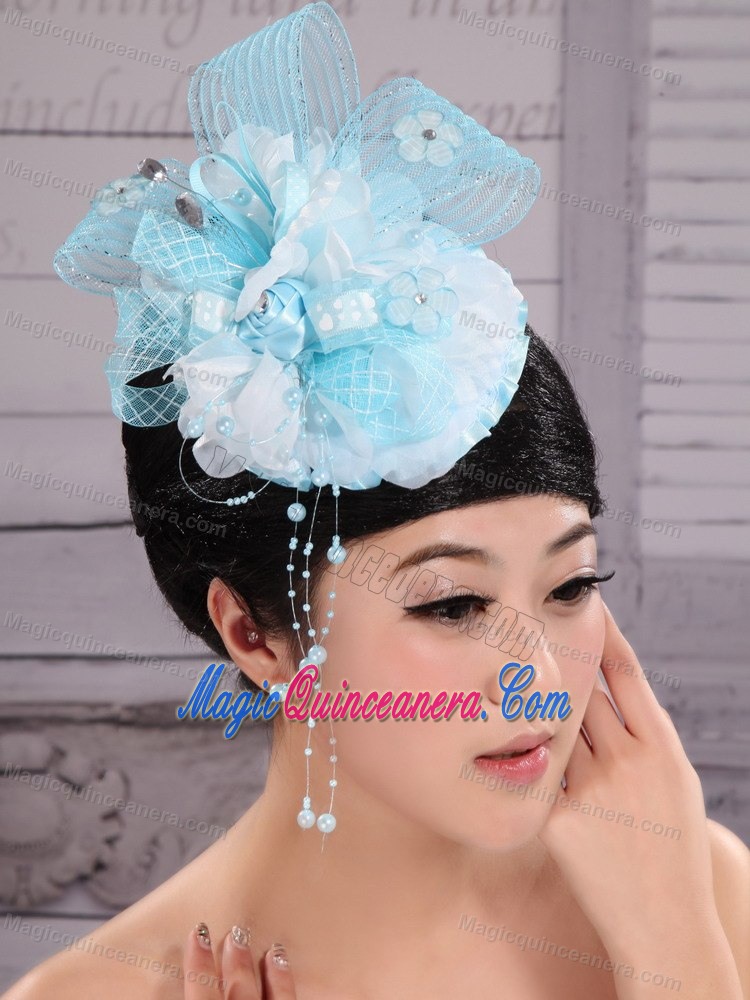 Tulle Aqua Blue Fully Handmade Headpices With Rhinestones and Flowers Decorate For Party