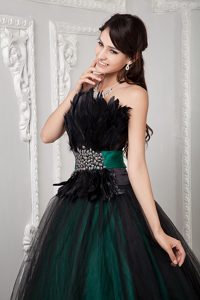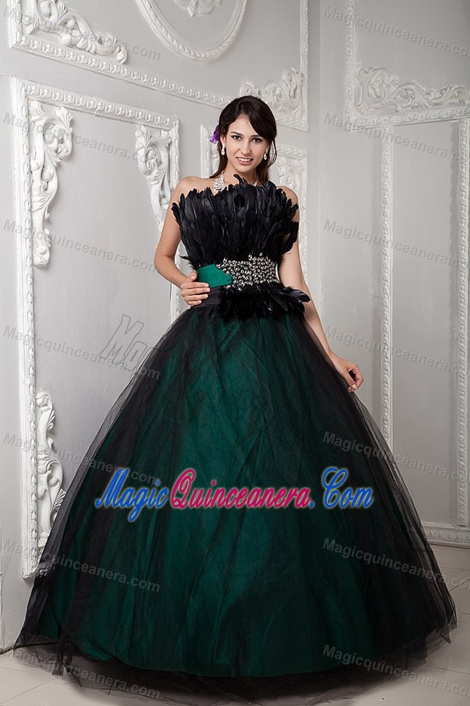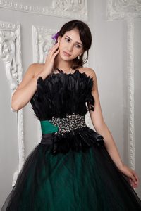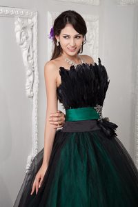 Tulle Ball Gown Strapless Sweet 15 Dress Feather and Beaded Decorate