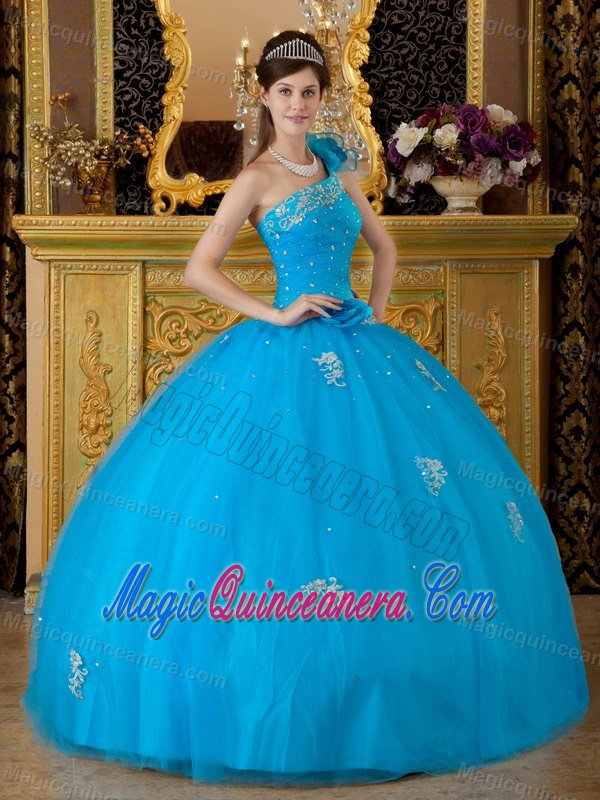Tulle One Shoulder La Quinceanera Dresses with Beading and Appliques