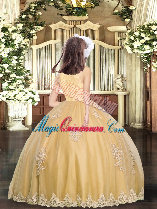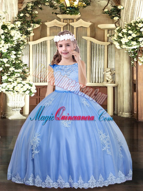 Tulle Scoop Sleeveless Zipper Beading and Appliques Little Girls Pageant Dress Wholesale in Baby Blue