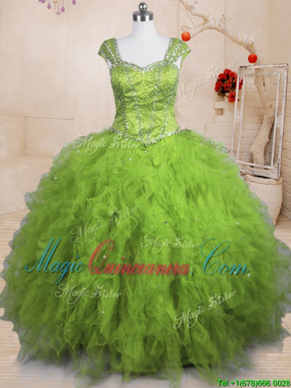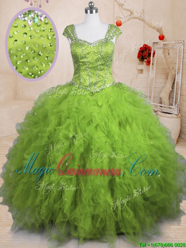 , Tulle Short Sleeves Floor Length Sweet 16 Dresses and Beading and Ruffles