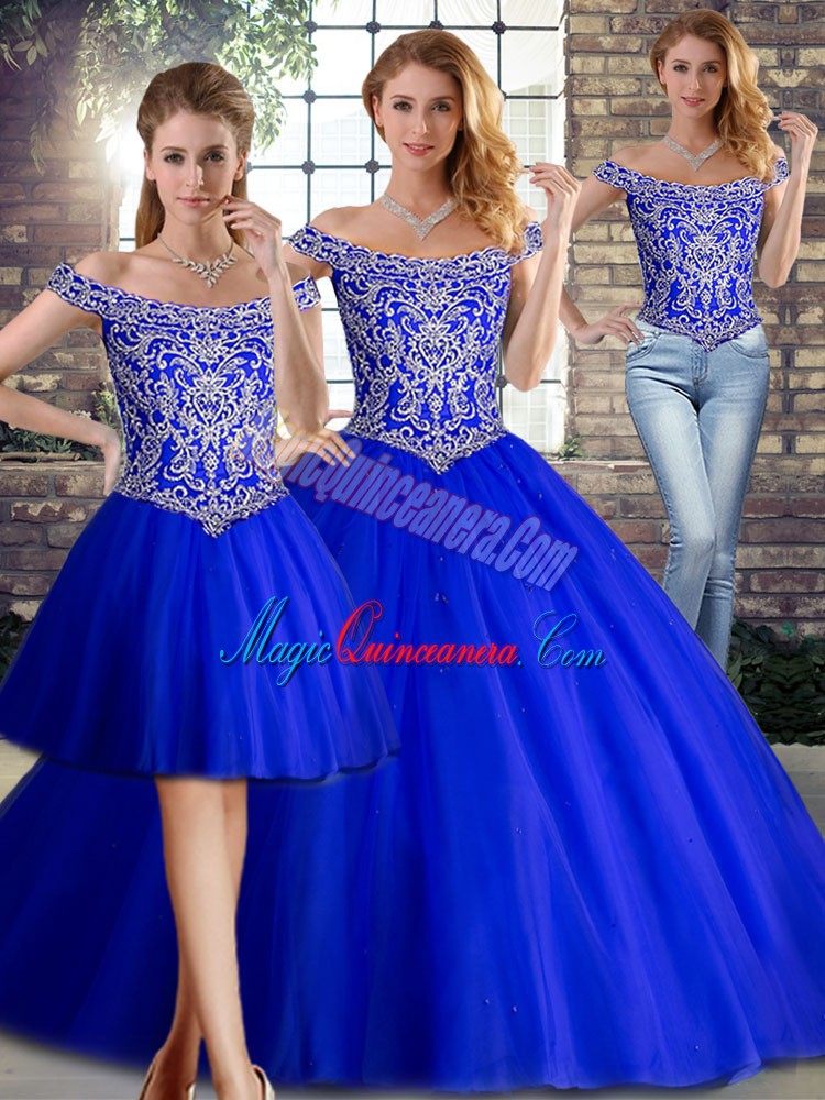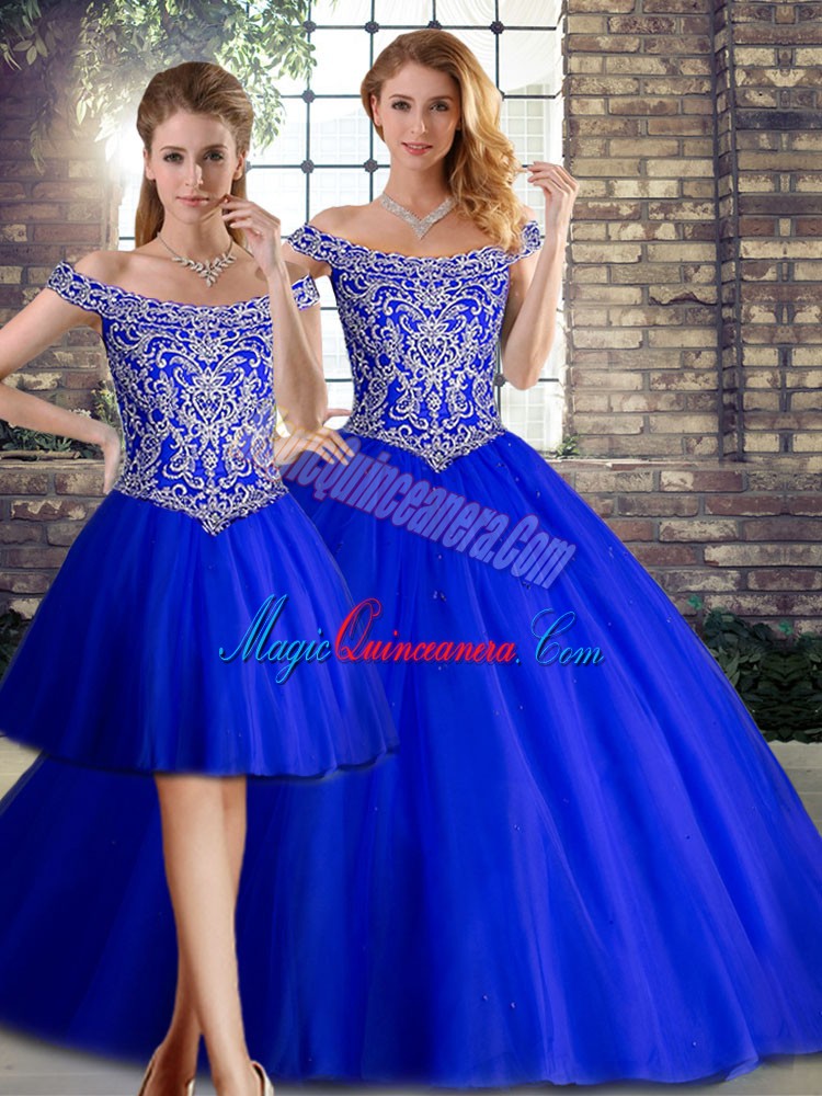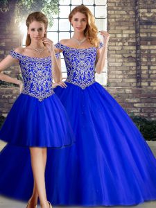 , Tulle Sleeveless Ball Gown Prom Dress Brush Train and Beading