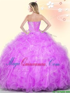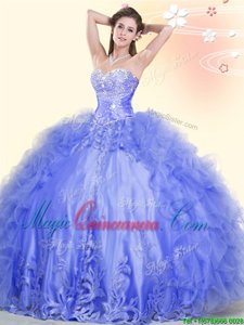 , Tulle Sleeveless Floor Length Quinceanera Dresses and Beading and Ruffles