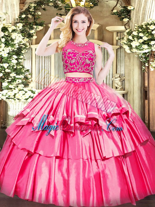 , Tulle Sleeveless Floor Length Quinceanera Gown and Beading and Ruffled Layers