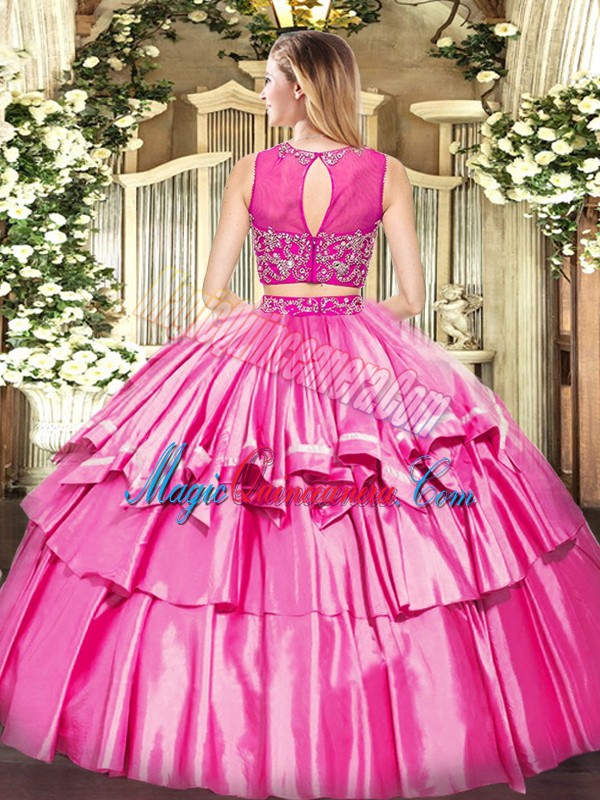 Tulle Sleeveless Floor Length Quinceanera Gown and Beading and Ruffled Layers