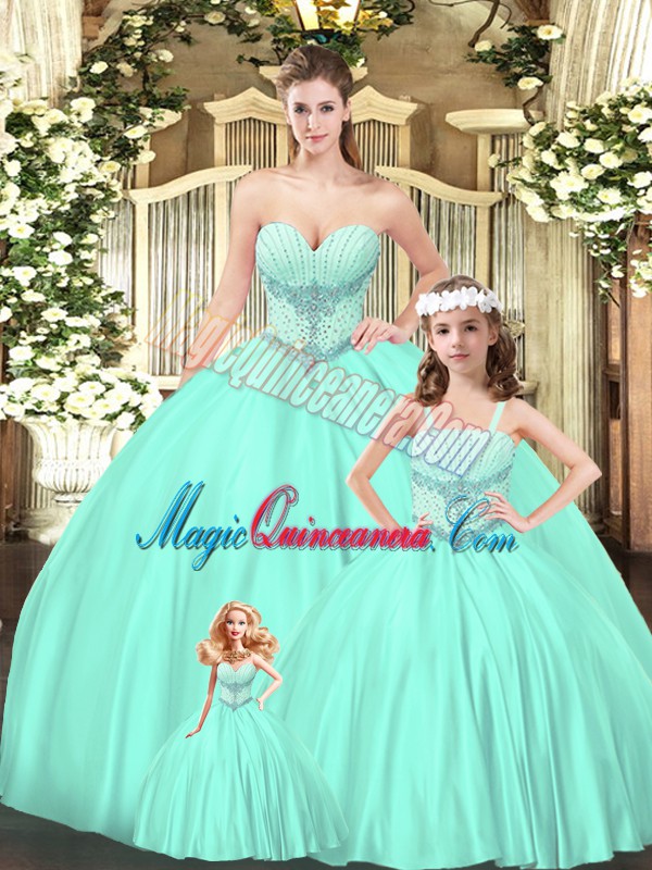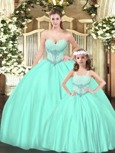 Tulle Sleeveless Floor Length Sweet 16 Quinceanera Dress and Beading