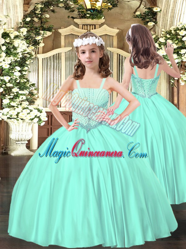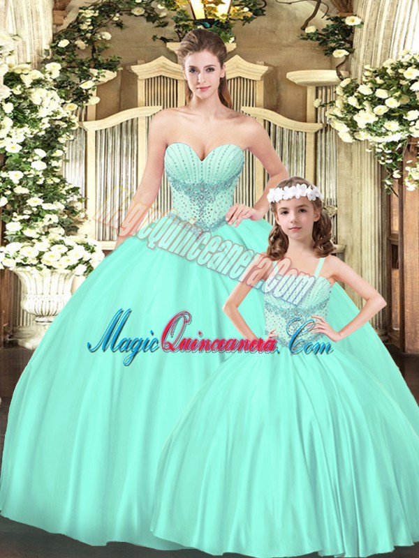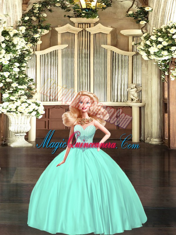 , Tulle Sleeveless Floor Length Sweet 16 Quinceanera Dress and Beading
