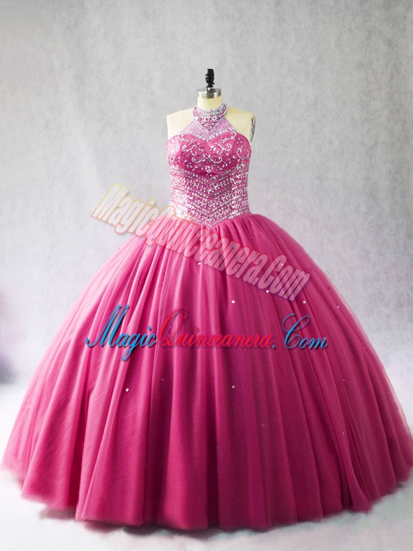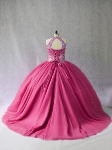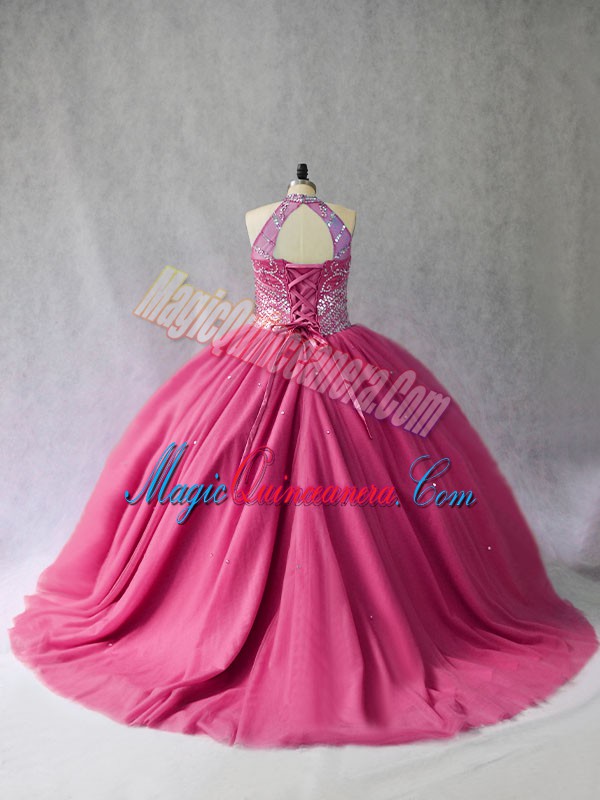 , Tulle Sleeveless Quinceanera Dress Brush Train and Beading