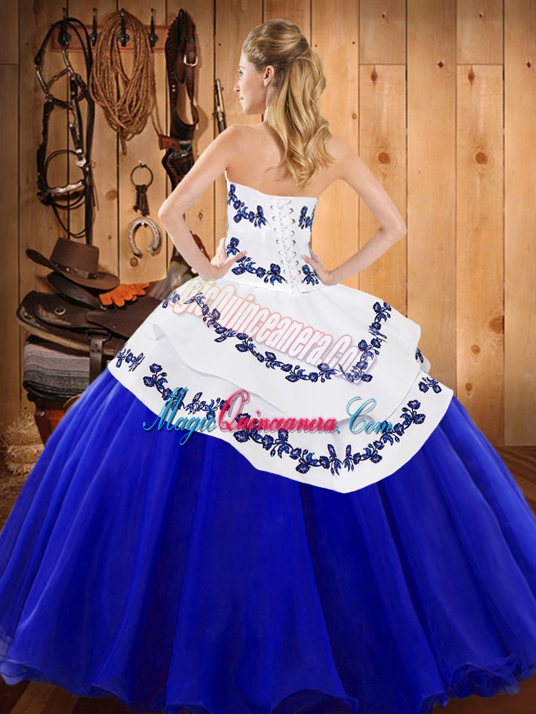 , Tulle Strapless Sleeveless Lace Up Embroidery Quinceanera Gowns in Rust Red