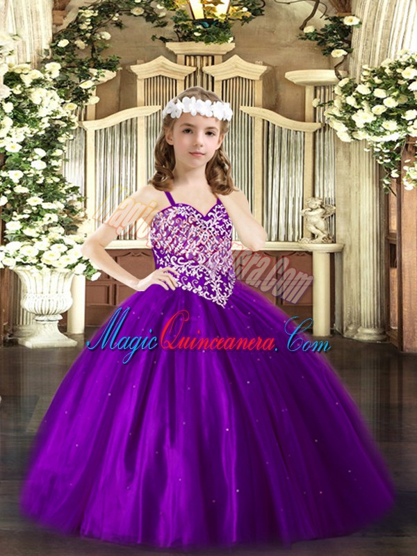 Tulle Straps Sleeveless Lace Up Beading Pageant Dress Wholesale in Purple