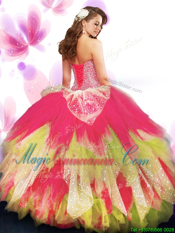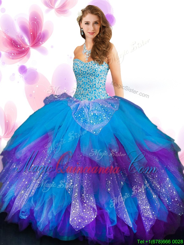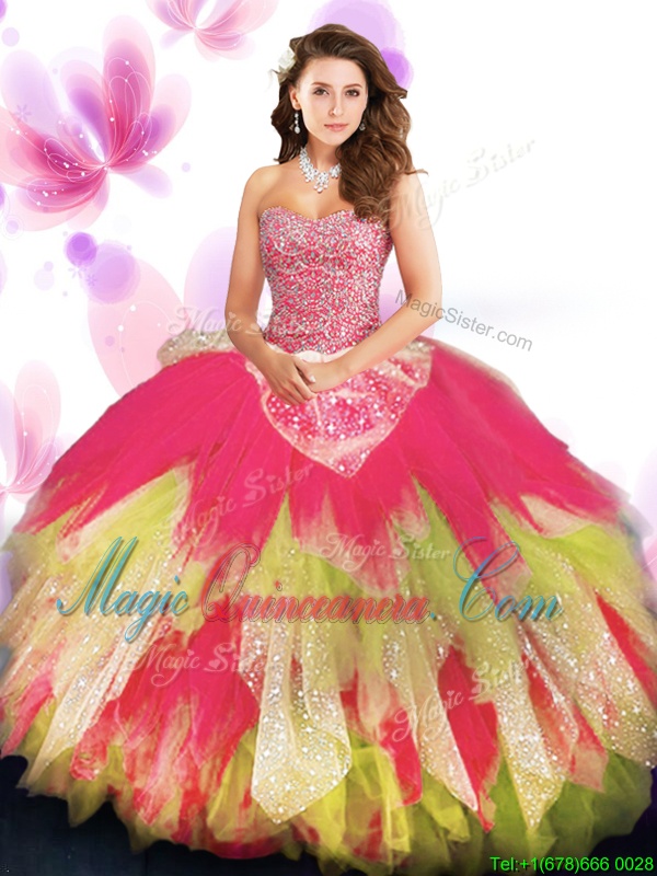 Tulle Sweetheart Sleeveless Lace Up Beading and Ruffled Layers Sweet 16 Dress in Multi-color
