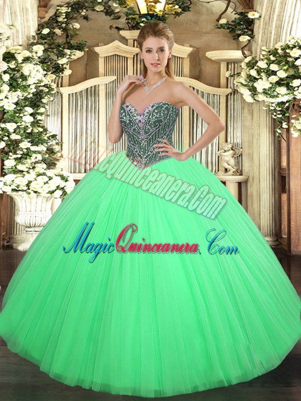 Tulle Sweetheart Sleeveless Lace Up Beading Vestidos de Quinceanera in Green