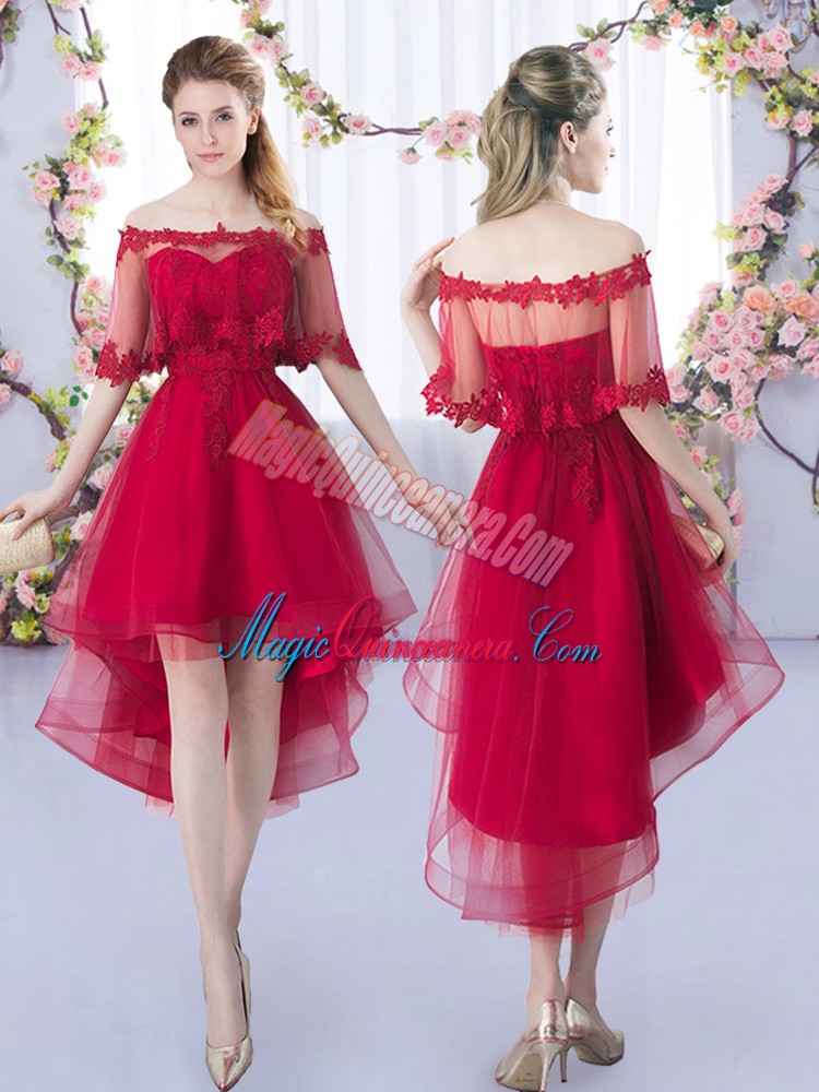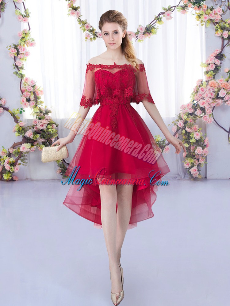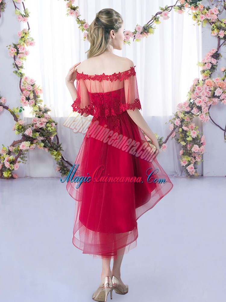 Tulle Sweetheart Sleeveless Lace Up Lace Damas Dress in Wine Red