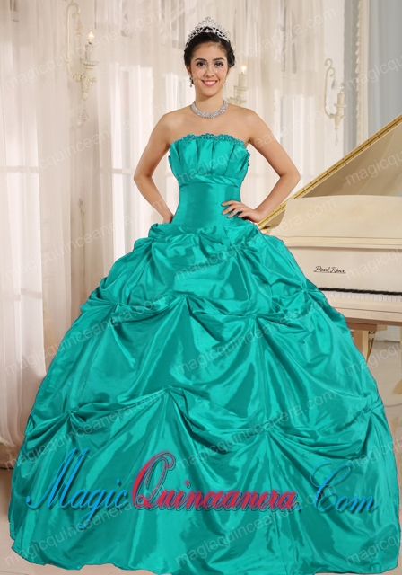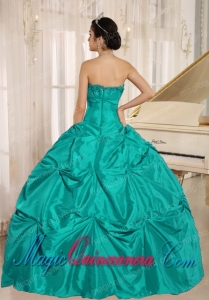 Turquoise Ball Gown Fashion Quinceanera Dress With Pick-ups For Custom Made Taffeta