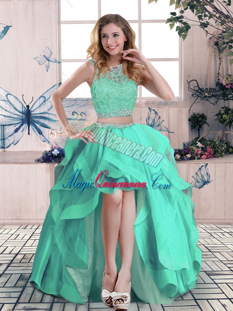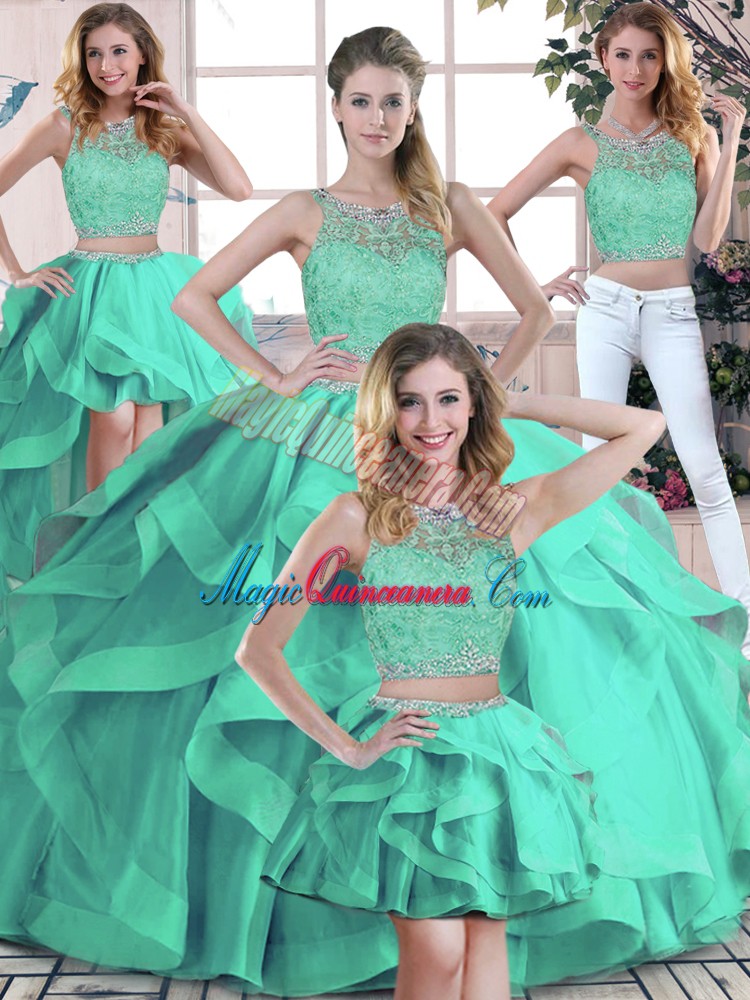 Turquoise Ball Gowns Scoop Sleeveless Tulle Floor Length Zipper Beading and Ruffles Vestidos de Quinceanera