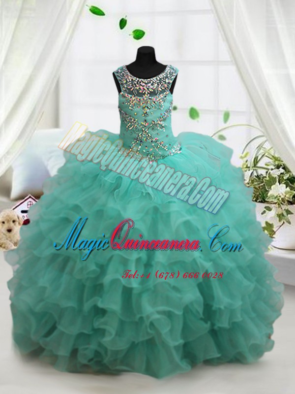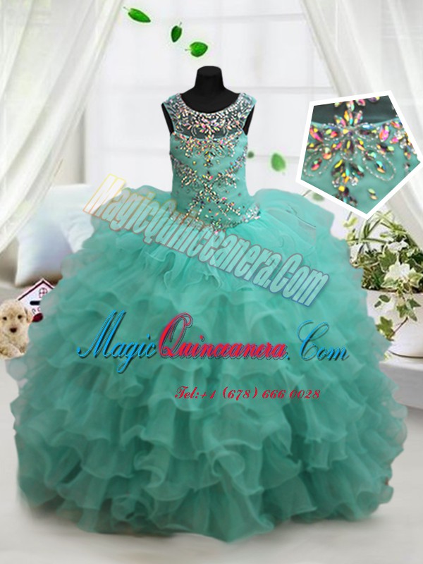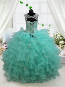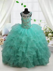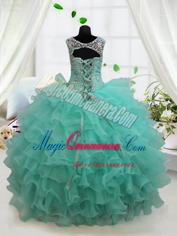 Turquoise Scoop Neckline Beading and Ruffled Layers Pageant Gowns Sleeveless Lace Up